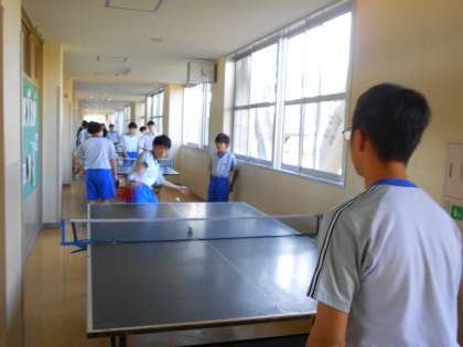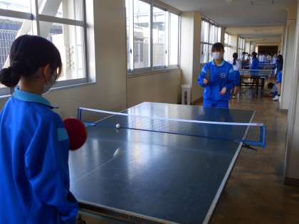 5月2日(木) 16:30 男女卓球部は、それぞれの課題を見付けて練習に励んでいました。