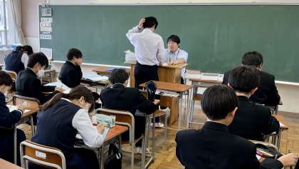 2年・授業風景 公開日 2024/05/07 更新日 2024/05/07 2学年 5月7日(火) 3限 GW明けですが、気持ちを切り替え、授業に集中しています。 (写真 上:2年1組 社会「幕藩体制の始まり」) (写真 中:2年2組 数学・少人数「文字式」) (写真 下:2年2組 数学・少人数「連立方程式」)