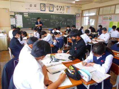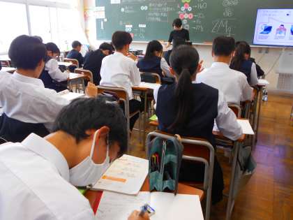 2年・授業風景 公開日 2024/05/07 更新日 2024/05/07 2学年 5月7日(火) 5限 午後からも頑張る山中生です。 (写真 上:2年3組 理科「原子について」) (写真 中:2年4組 技術「ロボット製作に向けて」) (写真 下:2年5組 理科「物質の結びつき」)