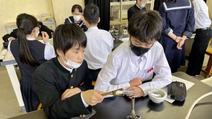 2年5組の理科は、第2理科室で、鉄と硫黄の化合の実験をしました。