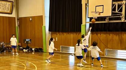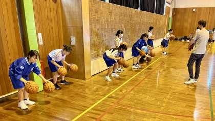 女子バスケットボール部が、体育館で活動しています。