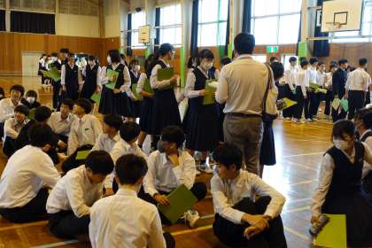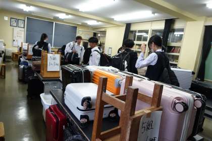 3年・学年集会 公開日 2024/05/13 更新日 2024/05/13 3学年 5月13日(月) 6限 修学旅行の荷物点検、京都班別学習のバス座席の確認、結団式・出発式のリハーサル等をしました。 (写真 上:登校時、第一理科室に荷物を運び込んでいます) (写真 中:先生の指示で荷物を確認しています) (写真 下:バスの座席通りに並んでいます)
