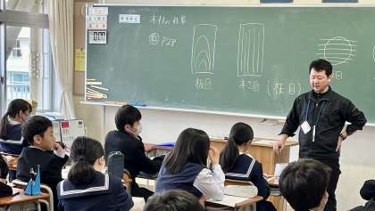 (写真 下:1年5組 技術「フラワーポットづくり」)