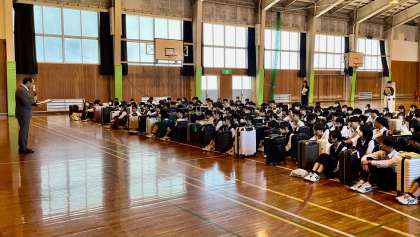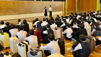 3年・修学旅行・前日・その1 公開日 2024/05/14 更新日 2024/05/14 3学年 5月14日(火) 1限 3年生は、体育館に集合し、「結団式・出発式」を行いました。 (写真 上、中:校長先生のお話) (写真 下:生徒代表の挨拶) いよいよ明日から修学旅行です。 ワクワクが止まりません!
