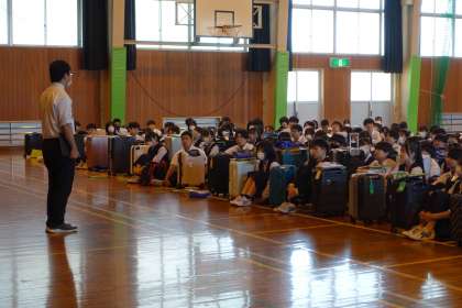 3年・修学旅行・前日・その2 公開日 2024/05/14 更新日 2024/05/14 3学年 5月14日(火) 1限 「結団式・出発式」のあと、最終確認を行い、荷物をトラックに積み込みました。 (写真 上:学年全体での最終確認) (写真 中、下:荷物の積み込みの様子)