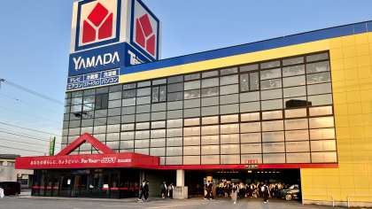 生徒が続々とヤマダ電機の駐車場に集合しています。(写真:上)