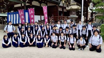 3年4組は、大阪天満宮に到着し、クラス写真を撮りました。