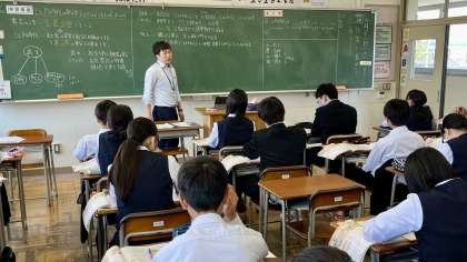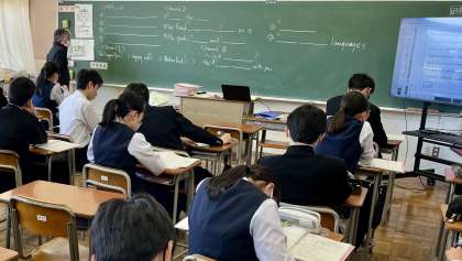 (写真 下:2年5組 英語「Unit1のまとめ」)