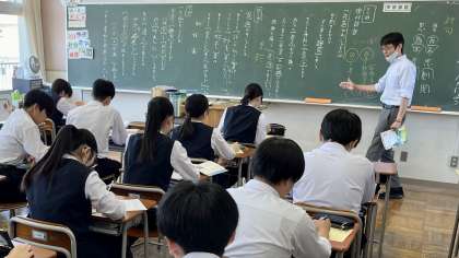 (写真 下:3年4組 国語「学びて時に之を思ふ」)