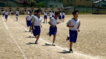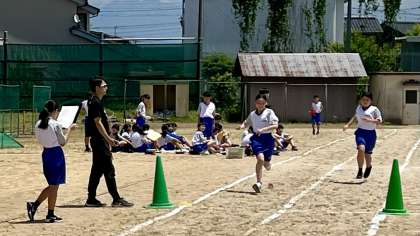 1年5組の体育と2年2組の体育は、グラウンドでスポーツテストをしていました。