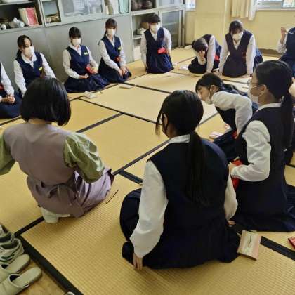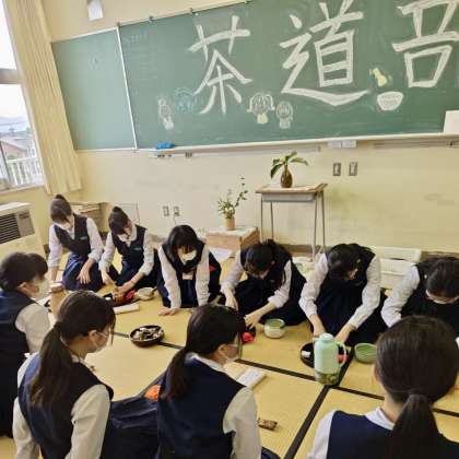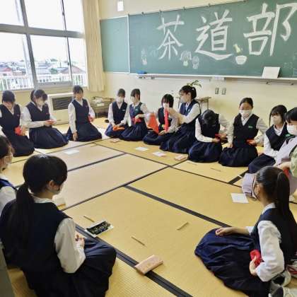5月23日(木)の部活動 公開日 2024/05/23 更新日 2024/05/23 部活動 5月23日(木) 16:30 茶道部は、PTA室で部活動をしています。 ふくさの折り方と茶道具の盆への乗せ方を学びました。 そのあと、実際にお茶を点てました。