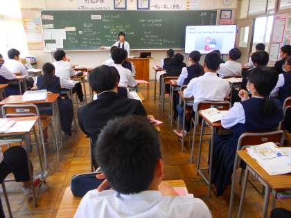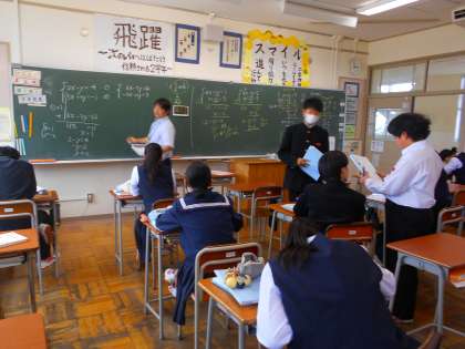 (写真 中:2年4組 数学少人数「連立方程式」)