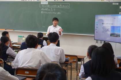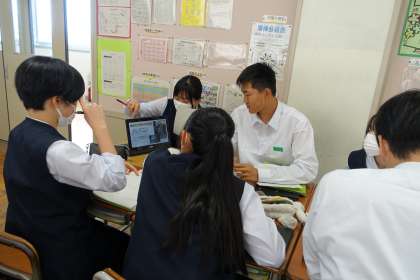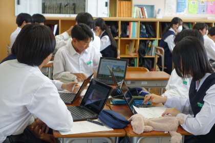 修学旅行のまとめを終え、今日は班内で発表をしています。