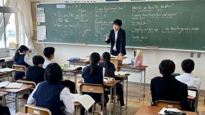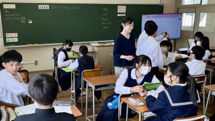 (写真 上:1年5組 英語・少人数「Unit2」)