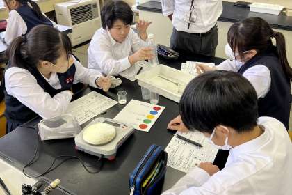 6月3日(月) 5限 2つの方法(カップを使う、ペットボトルを使う)で、質量の変化を調べています。