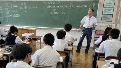 2年・授業風景 公開日 2024/06/05 更新日 2024/06/05 2学年 6月5日(水) 4限 爽やかな青空の下、授業に集中しています。 (写真 上:2年2組 国語「クマゼミ増加の原因を探る」) (写真 中:2年3組 保健「生活習慣病の予防」) (写真 下:2年5組 家庭科「色のはたらき」)