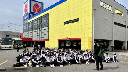 2年・金沢校外学習・その1 公開日 2024/06/06 更新日 2024/06/06 2学年 6月6日(木) 8:10 気温は18度、天気は晴れ。 絶好の校外学習日和です。 ヤマダ電機の駐車場に続々と生徒が集まってきました。