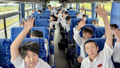 6月6日(木) 9:30 2号車は兼六園に向かっています。 「元気な人、手をあげて〜」 「はーい!」