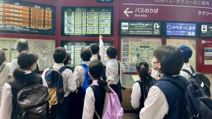 2年・金沢校外学習・その10 公開日 2024/06/06 更新日 2024/06/06 2学年 6月6日(木) 10:00 金沢駅の到着が遅れ、予定のバスに乗れなかった班がありましたが、冷静に掲示板を活用してバスに乗ることができました。