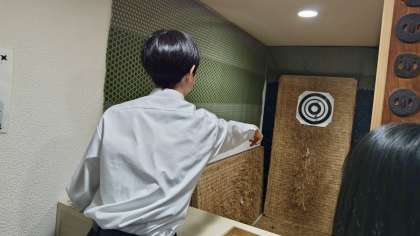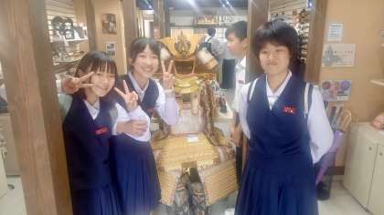 お土産を見たり、手裏剣投げ体験をしています。