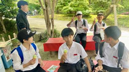 6月6日(木) 12:50 兼六園でおやつタイムと東山をバックで撮影です。