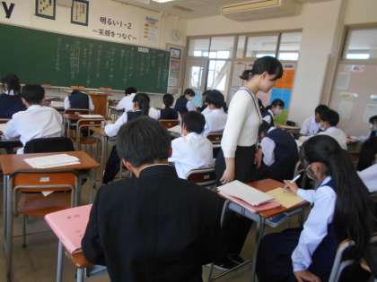 1年・授業風景 公開日 2024/06/07 更新日 2024/06/07 1学年 6月7日(金) 4限 定期考査の範囲に入っている学習をしているので、真剣さが増しています。 (写真 上:1年1組 英語「いくつをたずねる文」) (写真 中:1年2組 国語「詩の世界」) (写真 下:1年3組 数学「文字と式」)