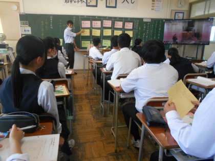 文章で書かれている内容を映像で確認しながら、ワークシートに丁寧にまとめています。