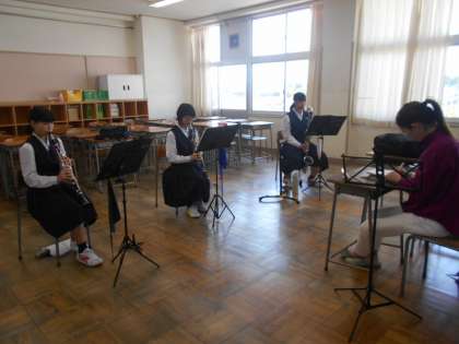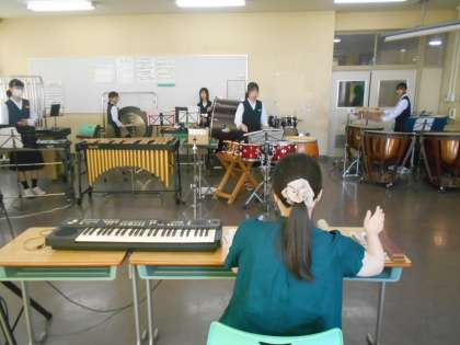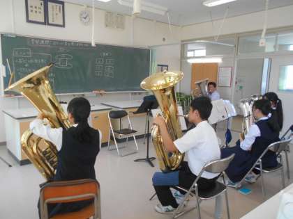 よい音を奏でられるように真剣な眼差しで指導を受けています。
