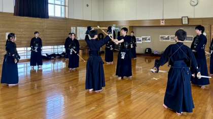 剣道部は、凌雲館の村雲先生がいらしての稽古です。