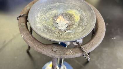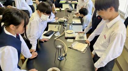 2年4組の理科は、第2理科室で、「金属を熱したときの質量の変化」を調べる実験をしていました。