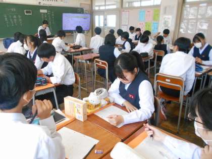 2年・授業風景・その1 公開日 2024/06/11 更新日 2024/06/11 2学年 6月11日(火) 3限 グループで確認し合ったり、挙手をして考えを述べたりと積極的に授業に参加しています。 (写真 上:2年1組 国語「文法」) (写真 中:2年2組 社会「日本のさまざまな地域」) (写真 下:2年5組 数学少人数授業「1次関数」)