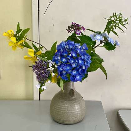 校長室前の紫陽花に、梅雨入りを感じさせますね!