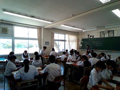 1年・学活・その2 公開日 2024/06/12 更新日 2024/06/12 1学年 6月12日(水) 5限 1年生は学活の時間にソーシャルスキルトレーニングとして「気持ちに気づくスキル」をしました。 Aくんの気持ちになるために、班で場面を演じてみたり、活動の前にクラスでちょっとしたゲームをしたりしました。 廊下からは、活動中の楽しそうな声が聞こえてきました。 (写真 上:1年4組 中:1年5組)