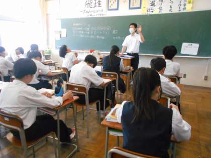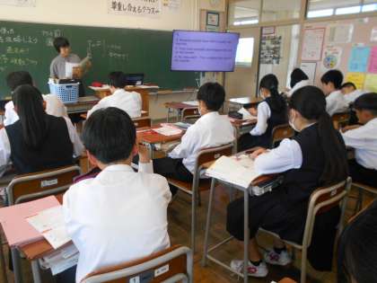 2年・授業風景 公開日 2024/06/20 更新日 2024/06/20 2学年 6月20日(木) 2限 2年生は、定期考査に向けて、用語や式の確認や、問題で注意すべきこと等を押さえました。 (写真 上:2年1組 理科「化学反応式」) (写真 中:2年3組 英語「Unit2」) (写真 下:2年4組 社会「身近な地域の調査」)