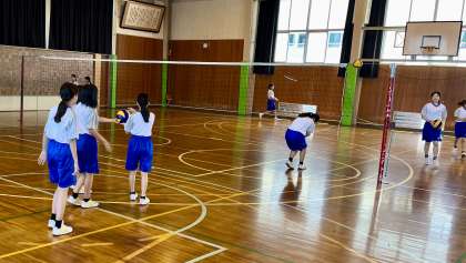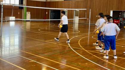 1年・体育・バレーボール 公開日 2024/06/20 更新日 2024/06/20 1学年 6月20日(木) 4限 1年5組の体育は、バレーボールで、「スパイクのジャンプのタイミングをつかもう」という学習課題のもと、スパイクに挑戦しています。 「タン・タ・ターン」のタイミングで、ボールが高い位置で打ちたいのですが、これがなかなか難しいのです。 タイミングをつかむポイントは、……。