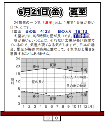 「夏至」とは、1年で1番、昼の時間が長い日です。