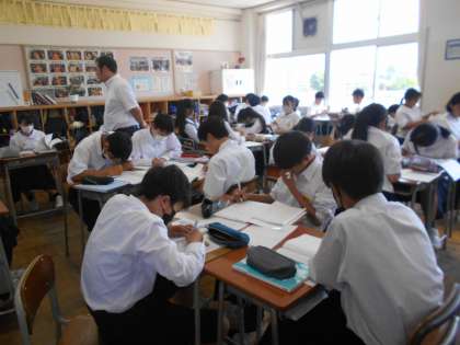1年・数学・定期考査に向けて 公開日 2024/06/21 更新日 2024/06/21 1学年 6月21日(金) 5限 1年5組の数学の時間の様子です。 定期考査に向けて、一人でワークやラインズに取り組む生徒、仲間と教え合う生徒、……。 理解できるようになりたいという一生懸命な姿が見られました。