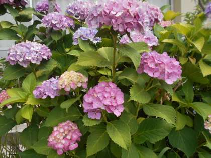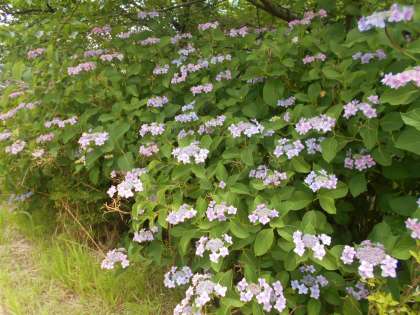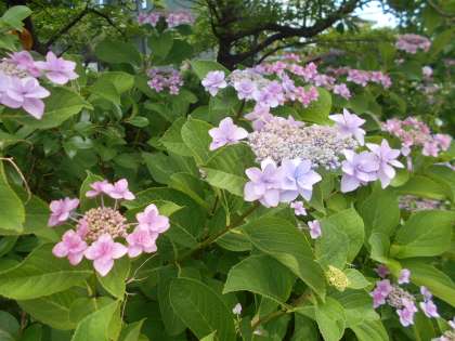 静かな時が流れる中、校庭には、紫陽花の花が梅雨入りを待ち望んでいました。