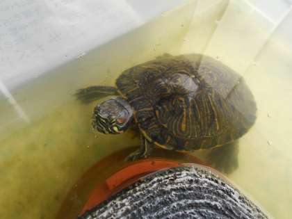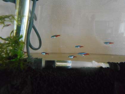 のぞみ級で飼っているミドリガメのキリト(写真:上)とむつみ級で飼っているネオンテトラ(写真:下)は元気ですが……。