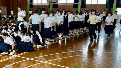 第1回 避難訓練 公開日 2024/06/24 更新日 2024/06/24 山室中学校のページ 6月24日(月) 4限 1階・調理室からの出火を想定した火災避難訓練を行いました。 どの学年も、静かに素早く行動することができました。 (写真 上:雨天のため、体育館に避難しました。) (写真 中、下:講評を真剣に聴いています。)