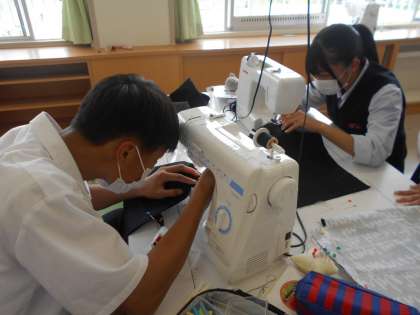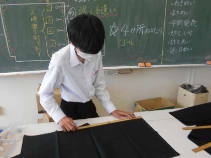 縫い目に印を付けたり、ミシンを使って縫い始めたりしていました。