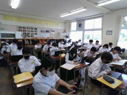 生徒一人一人が自分の設定した課題に対して、調べ学習をしています。
