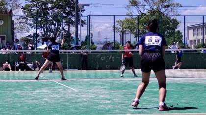 女子ソフトテニス部は、岩瀬スポーツ公園で試合を進めています。