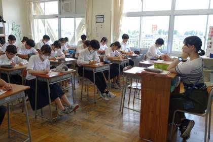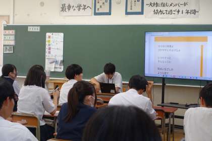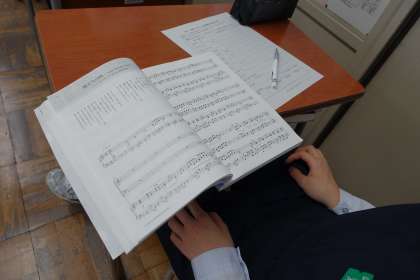 3年・「合唱コンクールの曲決め」 公開日 2024/07/04 更新日 2024/07/04 3学年 7月4日(木) 6限 3年生は、学活で合唱コンクールの曲決めを行いました。 候補の曲を聴いて、各自意中の曲を選びました。 (写真 上:テレビに映される歌詞を見ながら聴いています) (写真 中:楽譜を開きながら、曲を聴いています) (写真 下:真剣な態度で、曲に聞き入っています)