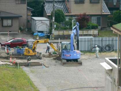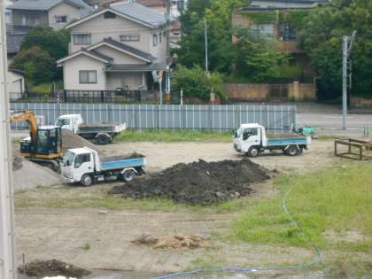 重機が数台入り掘削をしたり、トラックで土砂が運ばれたりしています。