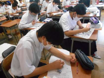 2年・国語・鑑賞文 公開日 2024/07/10 更新日 2024/07/10 2学年 7月10日(水) 3限 2年1組の国語は、鑑賞文を書いています。 いくつかの短歌の中から自分の好きな短歌を選び、情景等を思い浮かべながら文章にしています。