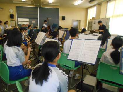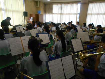 7月15日(月)の部活動・その2 公開日 2024/07/15 更新日 2024/07/15 部活動 7月15日(月) 10:30 吹奏楽部は、コンクールに向けて熱の入った練習をしています。 パート毎に丁寧に譜面をおさらいしたり、合奏では音程やテンポを再確認したりしていました。 あと1週間、頑張れ! 山中吹奏楽部