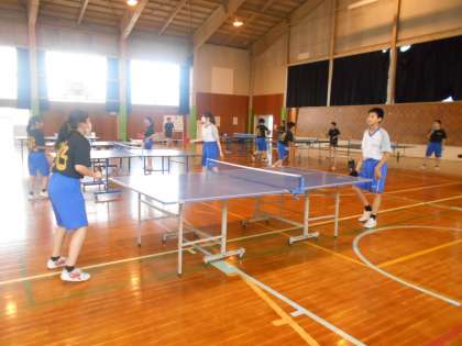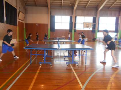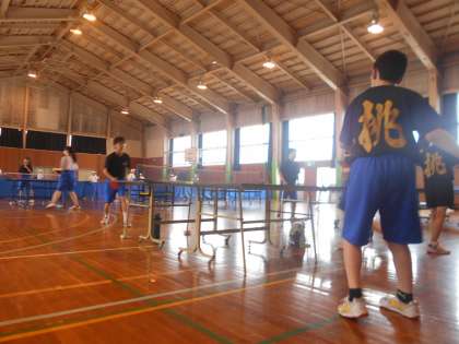数分間の試合で、勝った人が上位の台、負けた人が下位の台へ移動して試合を繰り返す練習です。