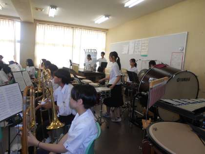 7月20日(土)の部活動・その3 公開日 2024/07/20 更新日 2024/07/20 部活動 7月20日(土) 10:30 吹奏楽部は、明日のコンクールに向けて最終調整をしています。 緊張感をもって合奏に臨んでいる姿が素敵です。