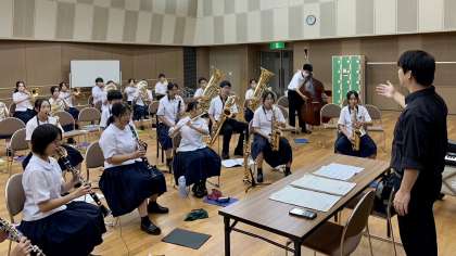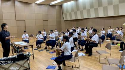 県吹奏楽コンクール・その2 公開日 2024/07/21 更新日 2024/07/21 部活動 7月21日(日) 15:10 吹奏楽部は、本番のステージの上で、これまでの練習の成果を発揮し、山室中サウンドをホールいっぱいに響かせてくれたと思います。 (写真 上、中:リハーサルの様子) 結果発表は金賞でしたが、残念ながら県代表になることはできませんでした。 たくさんの保護者のみなさん、温かい応援ありがとうございました。